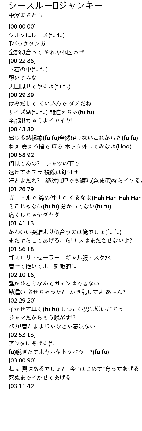 | [02:38.81] | イかせて早く(fu fu) しつこい男は嫌いだぞっ |