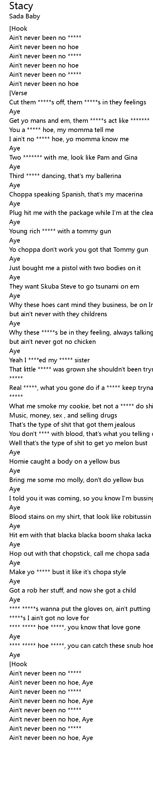 Ain't never been no hoe |