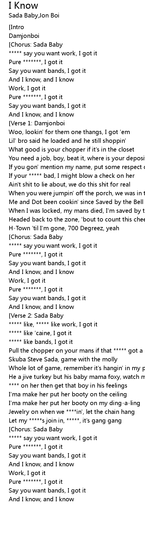 | [00:12.52] | ***** say you want work, I got it |