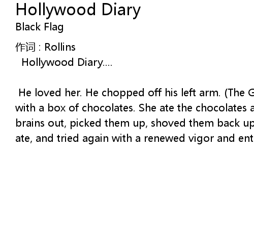 | He loved her. He chopped off his left arm. The Good One And sent it to her with a box of chocolates. She ate the chocolates and watched T. V. He blew his brains out, picked them up, shoved them back upside his head, made breakfast, ate, and tried again with a renewed vigor and enthusiasm not seen by many. |