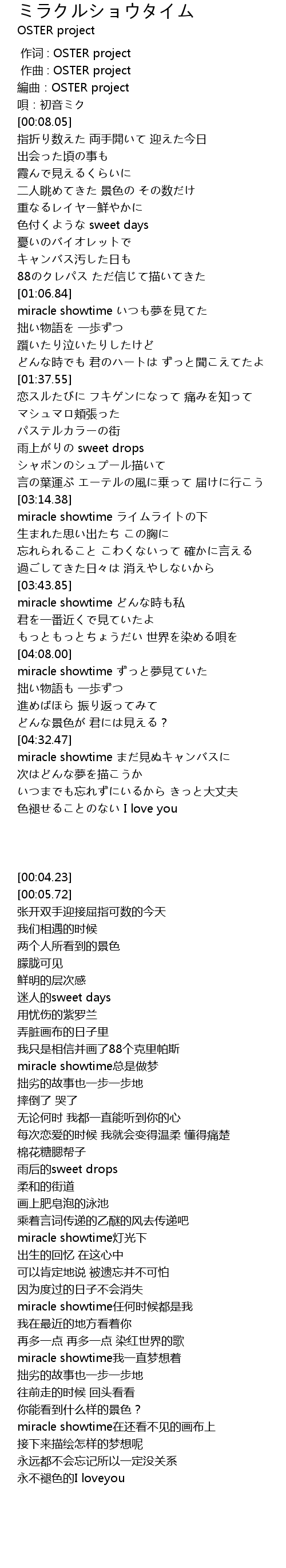 | [04:12.42] | miracle showtime ずっと夢見ていた |