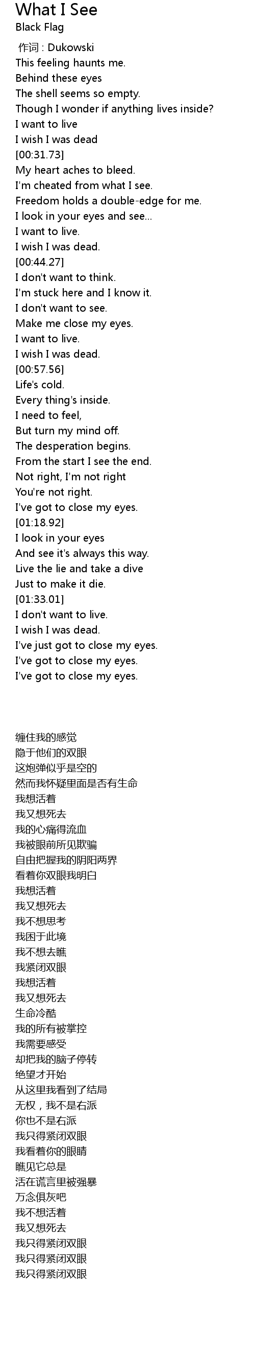 | [01:33.51] | I don't want to live. |