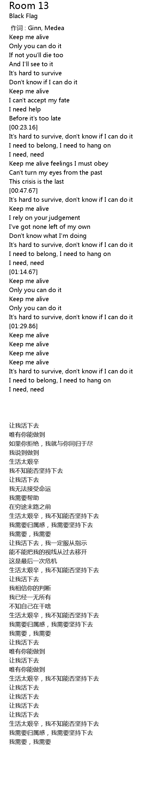 | [01:31.00] | Keep me alive |