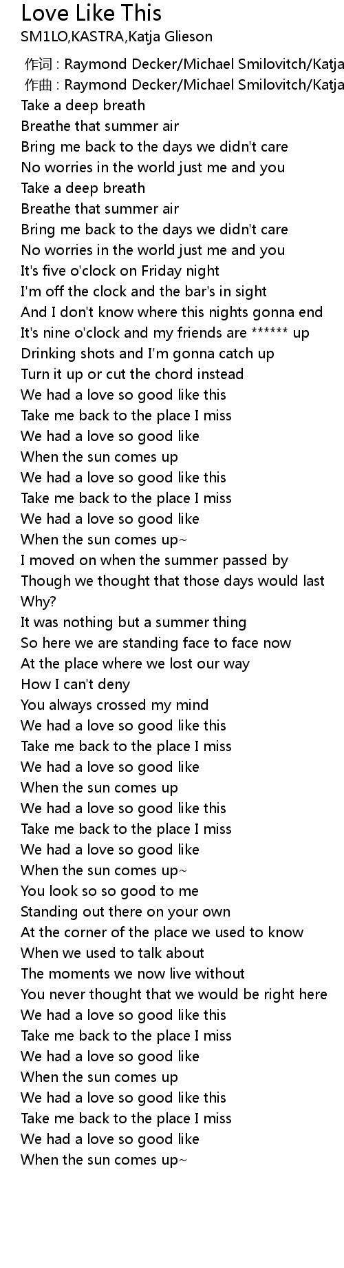 | [00:39.15] | Drinking shots and I'm gonna catch up |