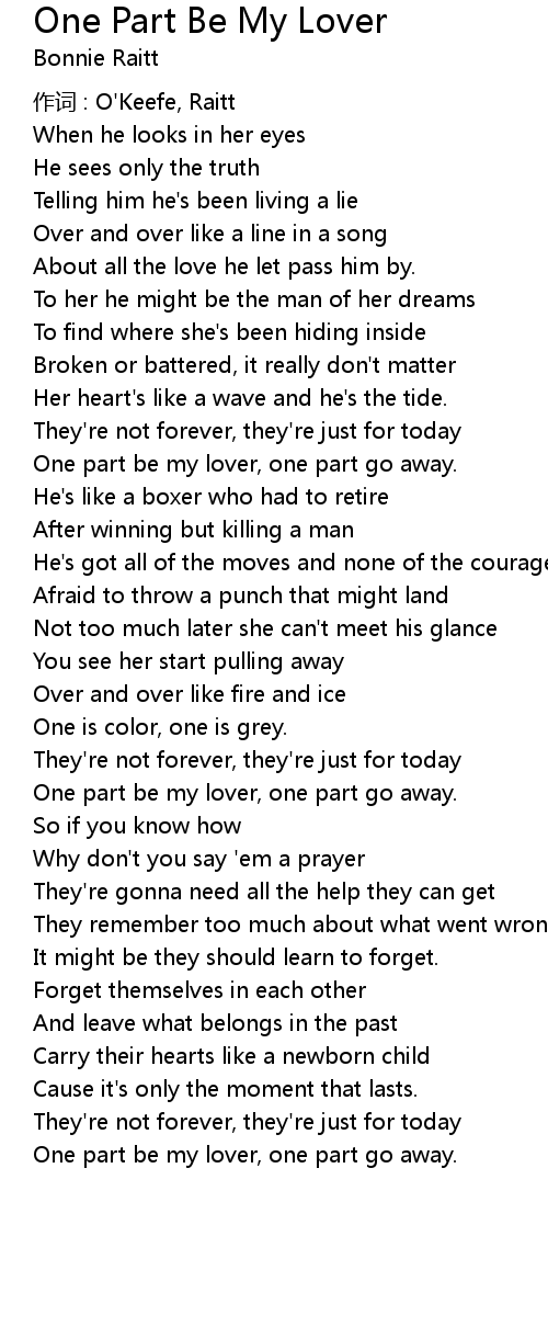 | One part be my lover, one part go away. |