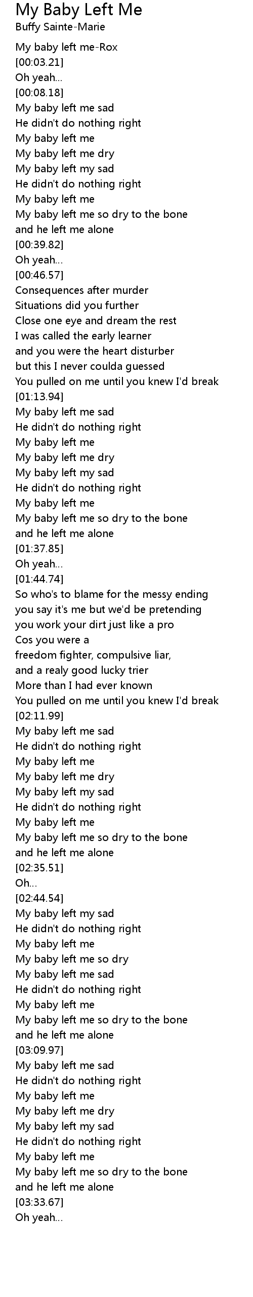 | [03:15.34] | My baby left me |