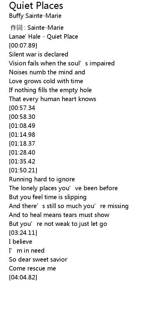 | [00:01.12] | Lanae' Hale Quiet Place |