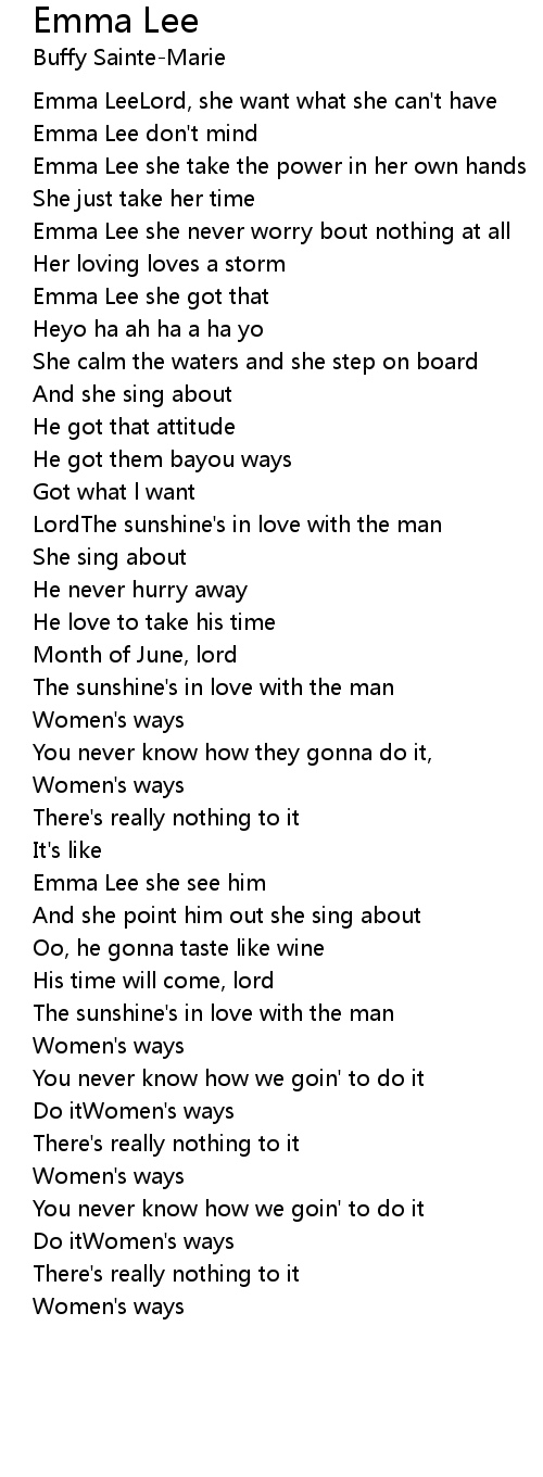 Emma Lee she never worry bout nothing at all |