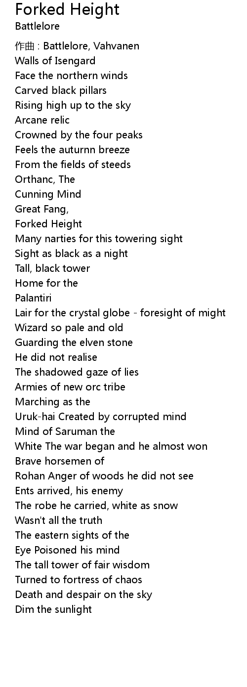| 歌曲 | Forked Height |