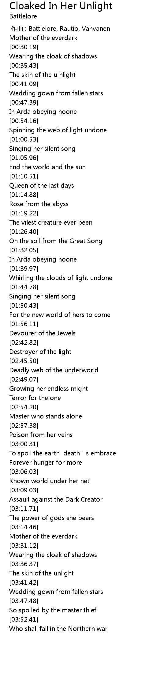 | [00:00.00] | 作曲 : Battlelore, Rautio, Vahvanen |
