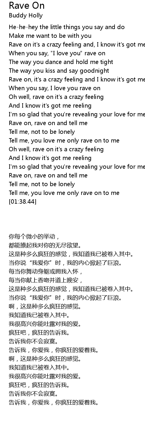 Rave on, it's a crazy feeling and I know it's got me reeling |