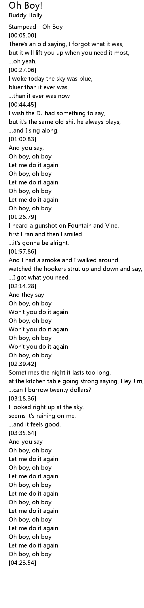 | [00:02.00] | Stampead Oh Boy |