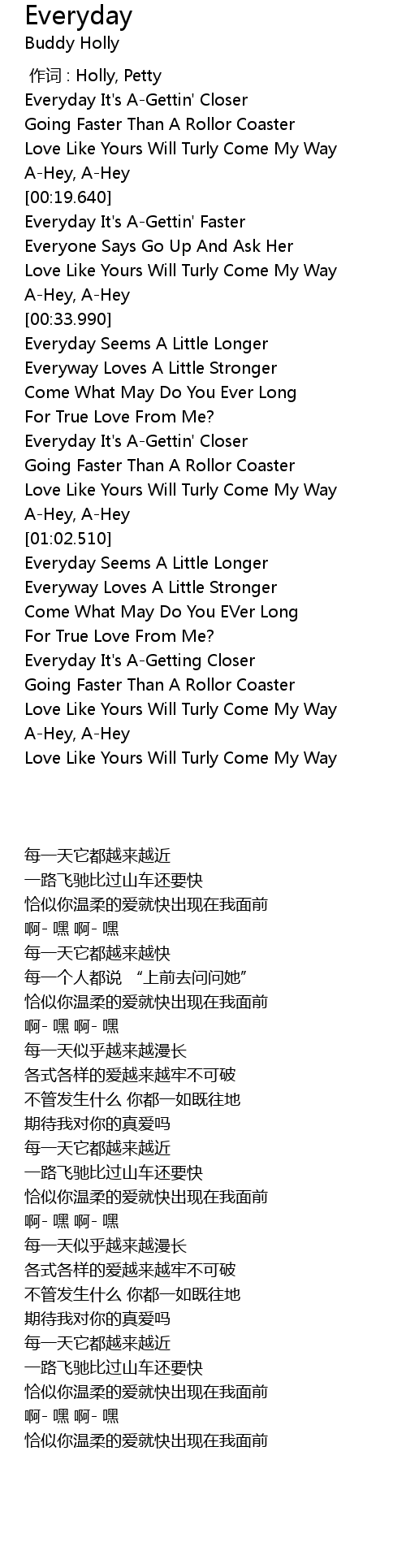 | [01:45.190] | Everyday It' s AGetting Closer |
