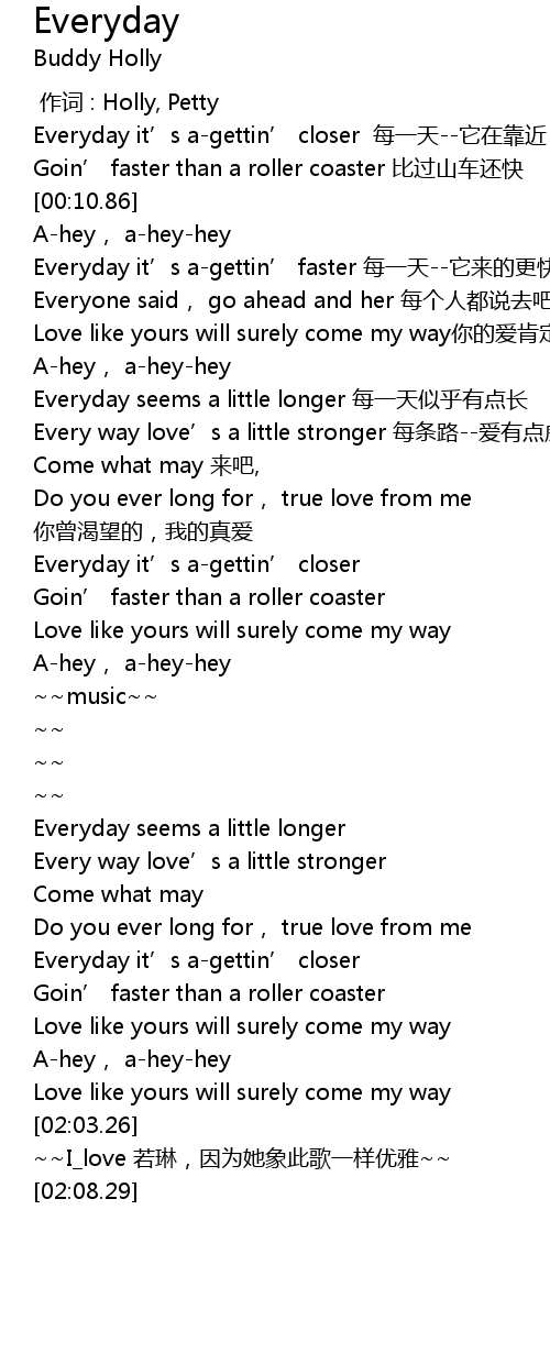 | [00:46.71] | Everyday it’s a-gettin’ closer |