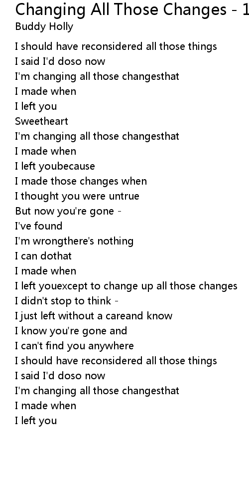 Changing All Those Changes - 1963 Album Version 歌词