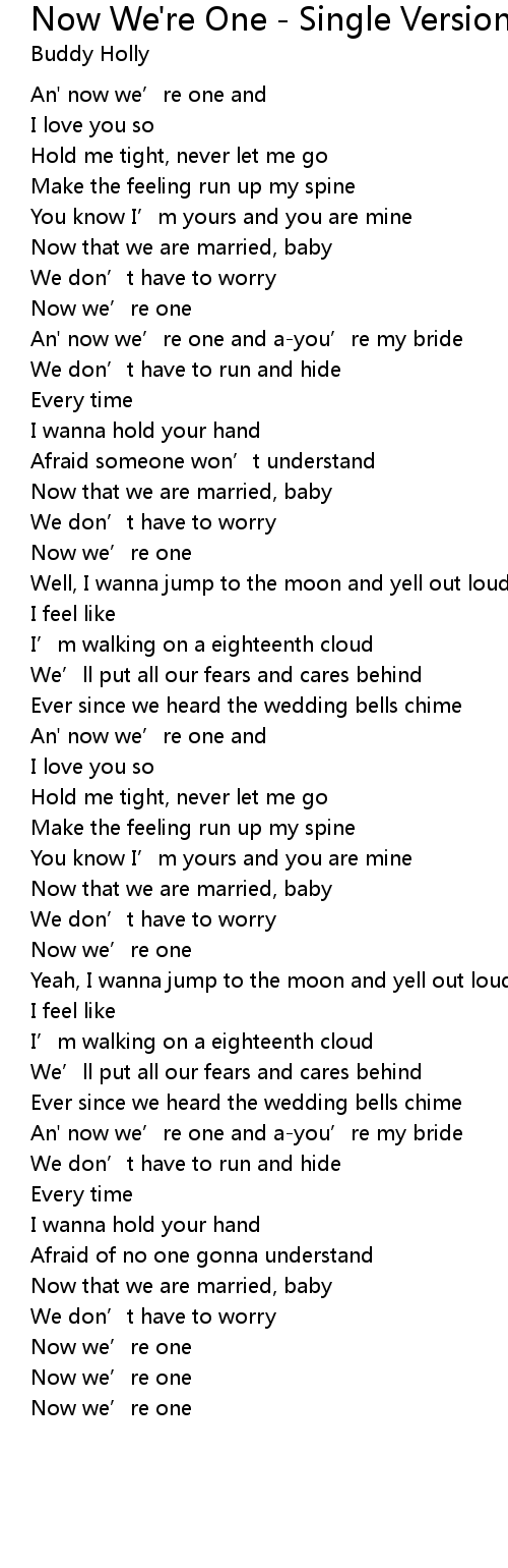 | An' now we’re one and | |