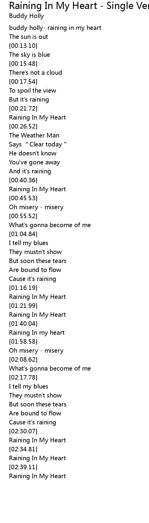 | 歌曲 | Raining In My Heart - Single Version (Stereo) |