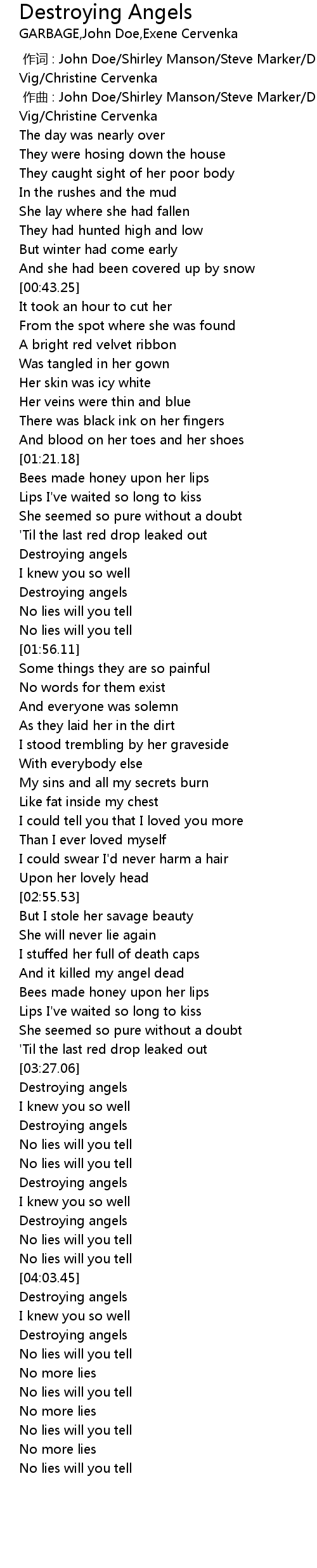 | [00:00.000] | 作词 : John Doe/Shirley Manson/Steve Marker/Duke Erikson/Butch Vig/Christine Cervenka |