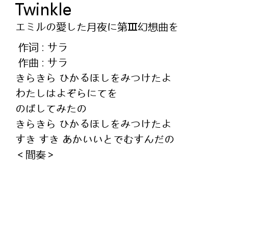 | [00:12:69] | きらきら ひかるほしをみつけたよ |