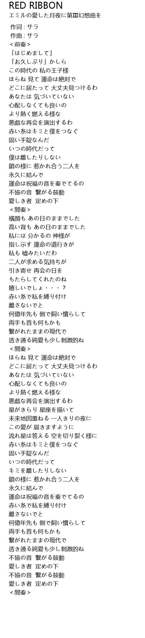 | [00:00.000] | 作词 : サラ |