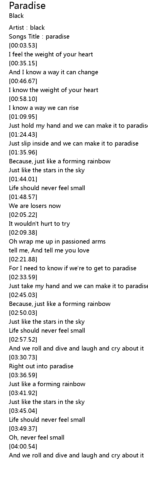 | [00:02.17] | Songs Title: paradise |