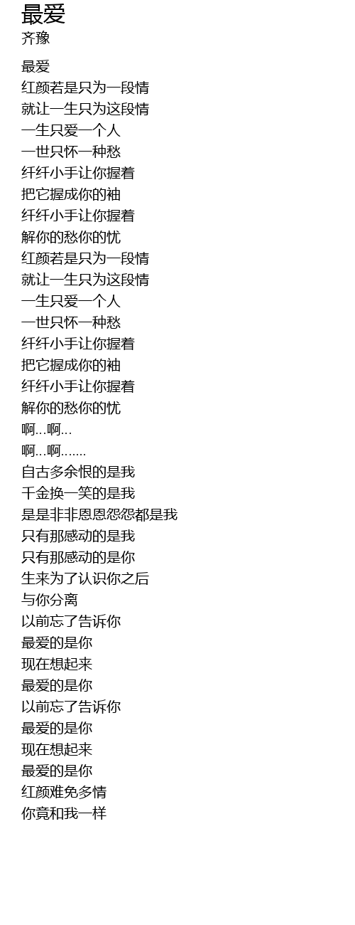 | [00:43.80] | yi sheng zhi ai yi ge ren |