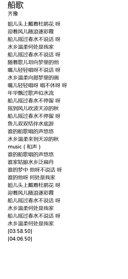| [00:56.50] | 船儿摇过春水不说话 呀 |