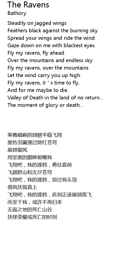 | [00:22] | 飞翔吧,我的渡鸦,勇往直前 |