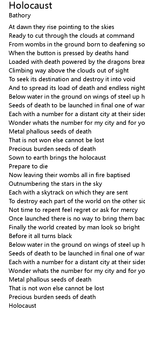 Sown to earth brings the holocaust |