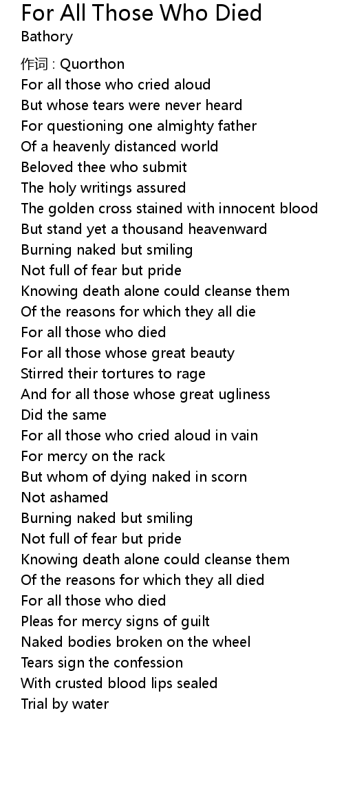 | 歌曲 | For All Those Who Died |