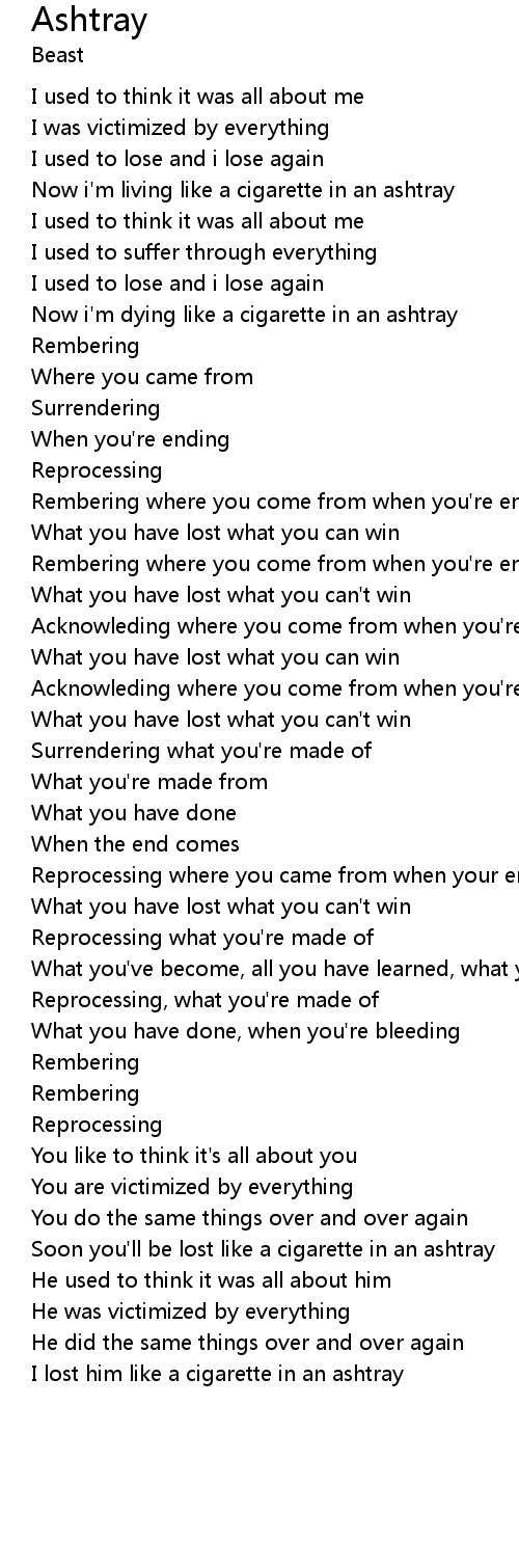 | Soon you'll be lost like a cigarette in an ashtray | |