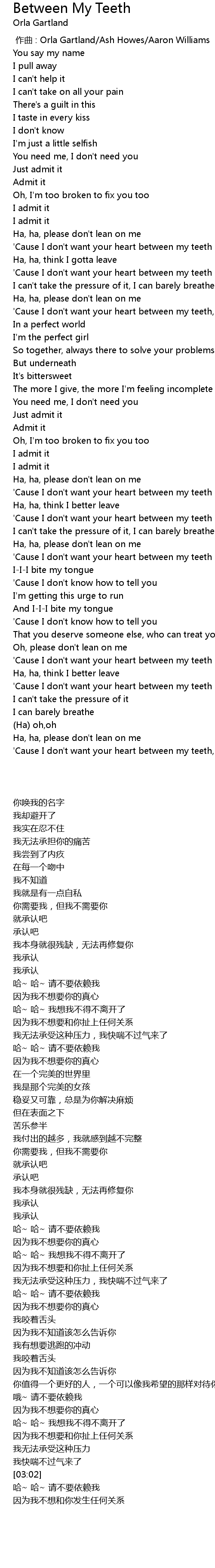 | 歌曲 | Between My Teeth |