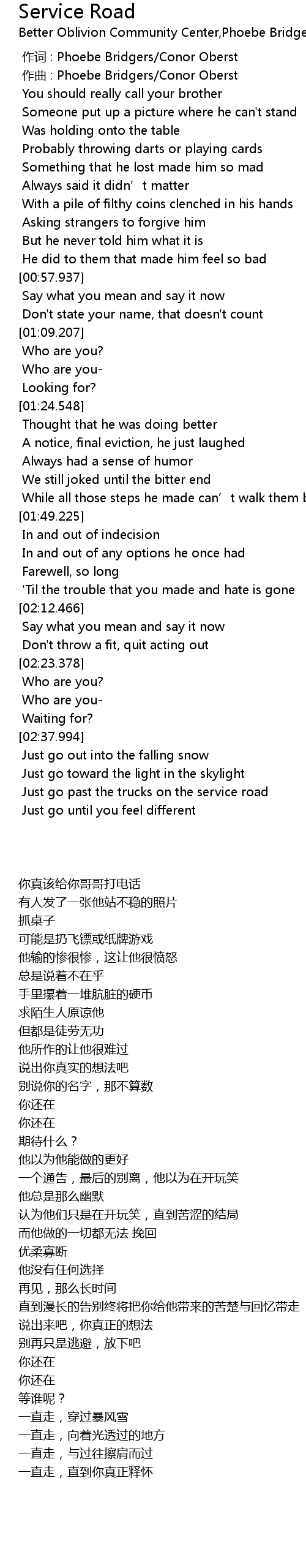 | [00:01.000] | zuò qǔ : Phoebe Bridgers Conor Oberst |