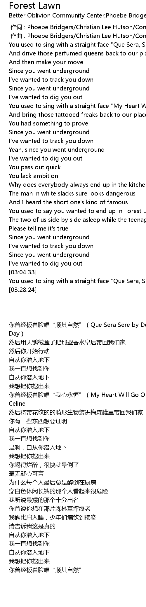 | [02:15.64] | You used to say you wanted to end up in Forest Lawn |