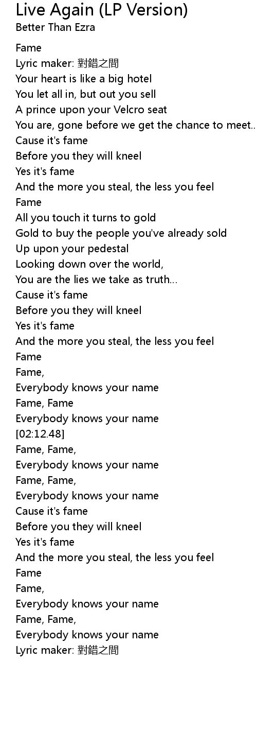 | [00:41.50] | You are, gone before we get the chance to meet |
