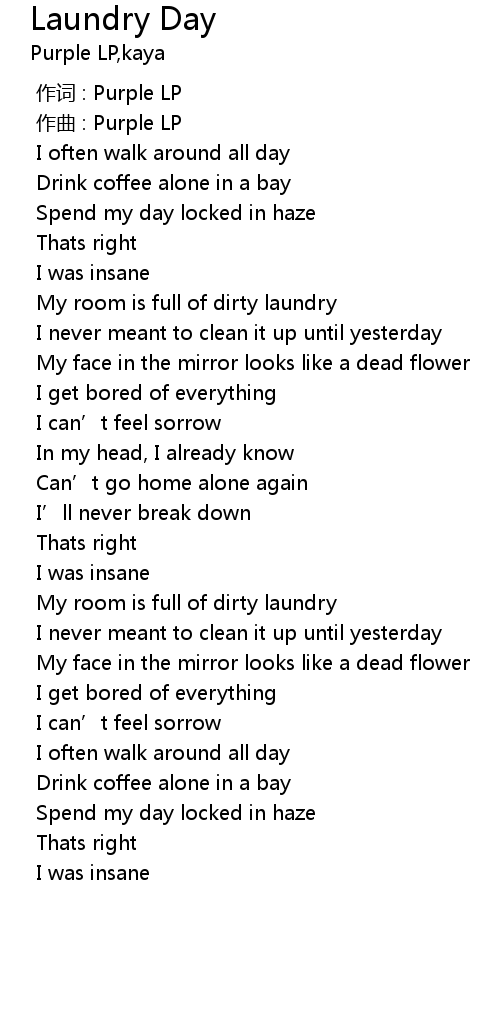 | [00:39.360] | My room is full of dirty laundry |