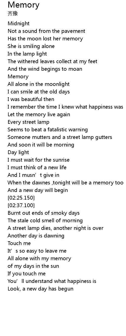 | [02:05.200] | When the dawnes , tonight will be a memory too |