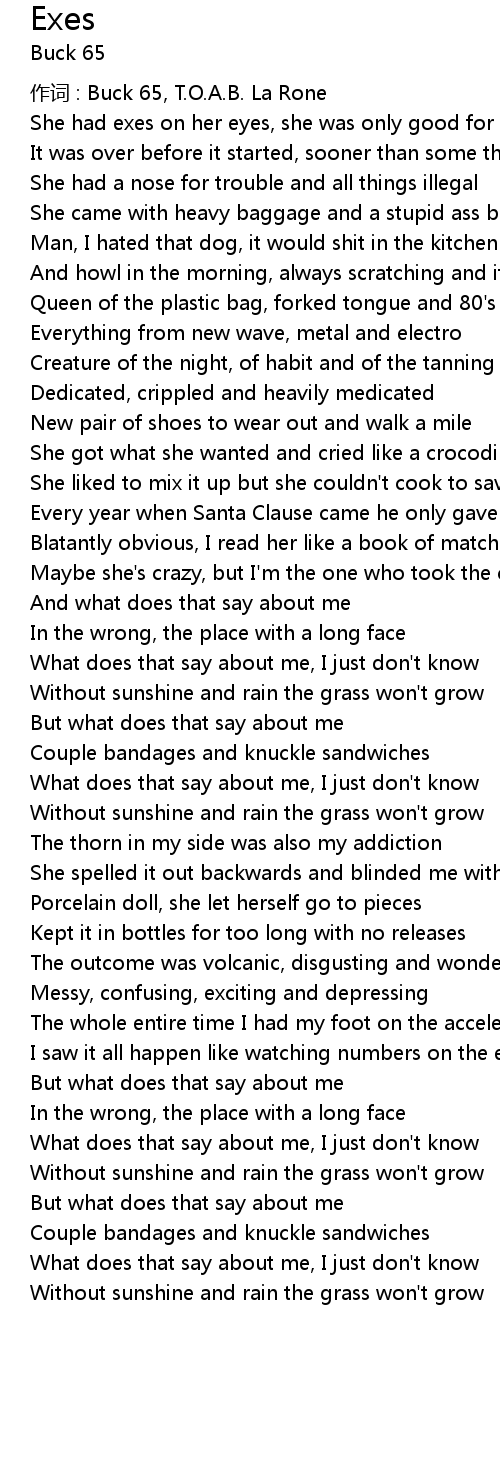 | 作词 : Buck 65, T.O.A.B. La Rone | |