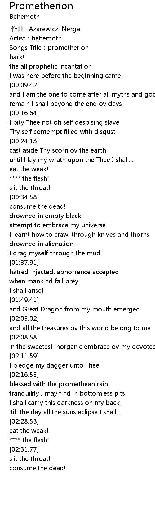 | [00:00.00] | 作曲 : Azarewicz, Nergal |
