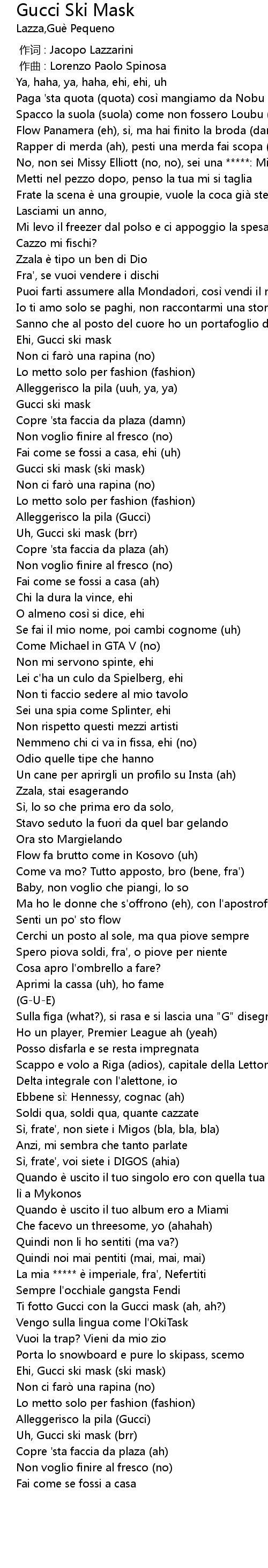 | [01:16.74] | Gucci ski mask (ski mask) |