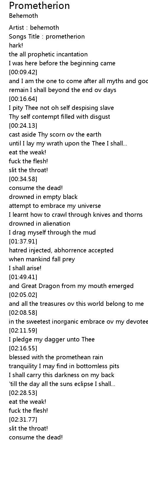| [00:02.82] | Artist:behemoth |