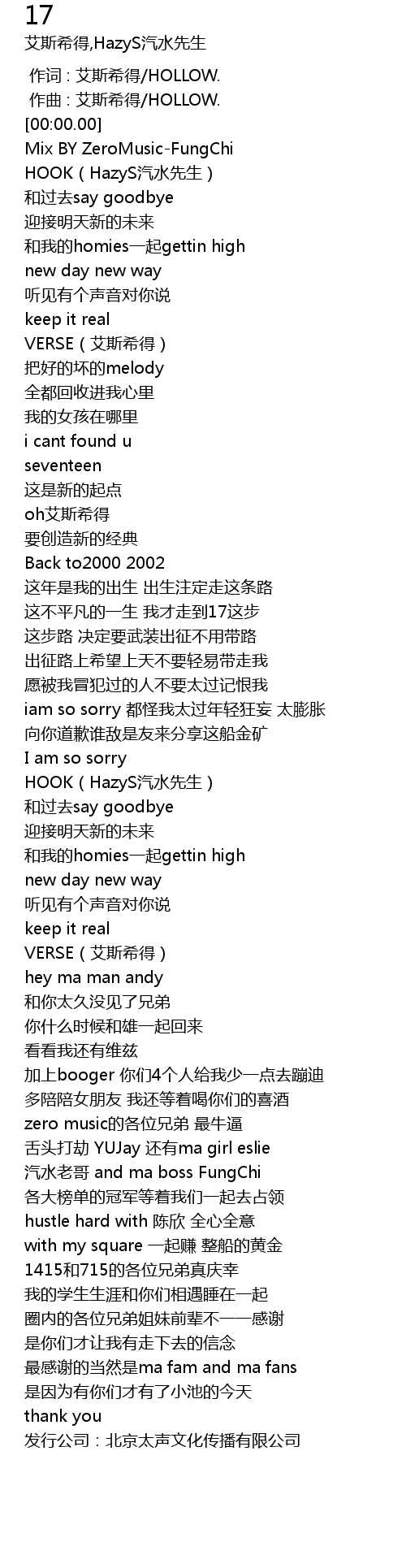 | [00:12.40] | HOOK HazyS qi shui xian sheng |