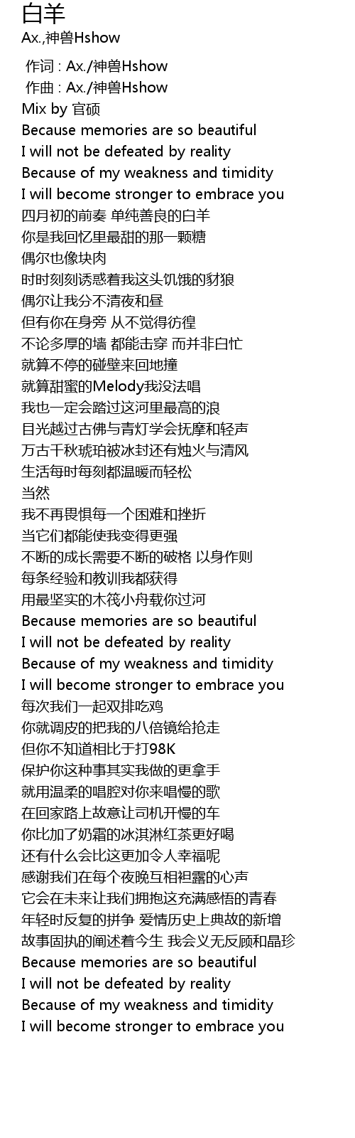 | [00:00.000] | 作词 : Ax./神兽Hshow |