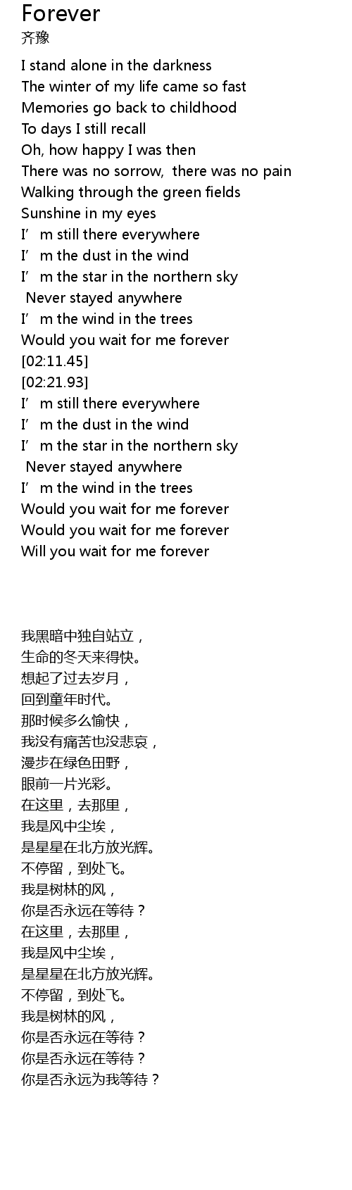 | [03:08.40] | Will you wait for me forever |
