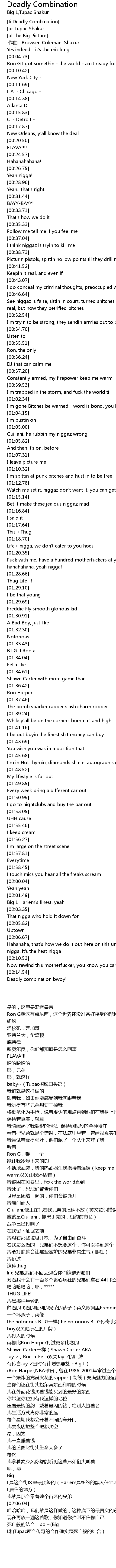 | [02:14.70] | 死亡般的结合!boi~(Big L和Tupac两个传奇的合作确实是死亡般的结合) |