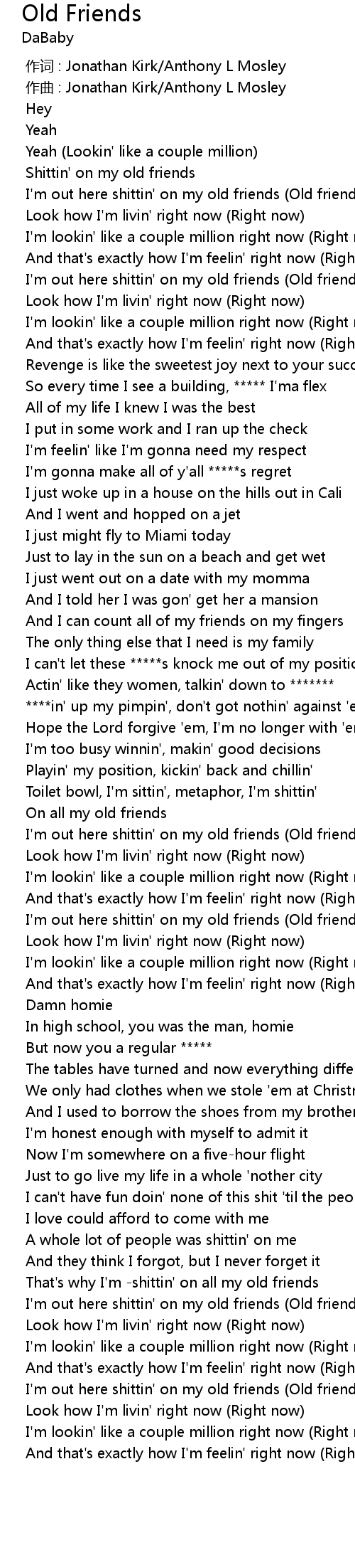 | [01:21.974] | I' m out here shittin' on my old friends Old friends |