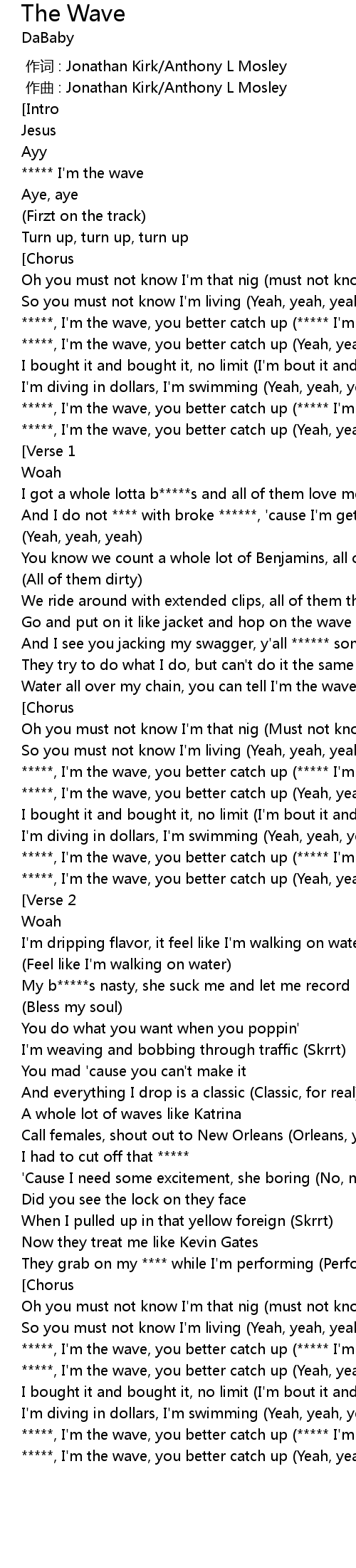 | [00:40.503] | *****, I'm the wave, you better catch up (***** I'm the wave) |