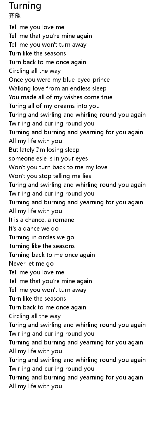 | [01:52.190] | Turing and swirling and whirling round you again |