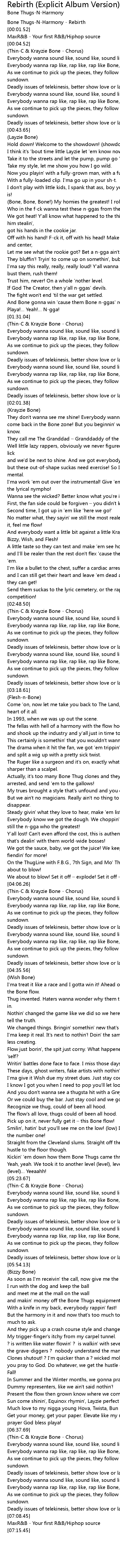 | [00:00.52] | Bone ThugsNHarmony Rebirth |