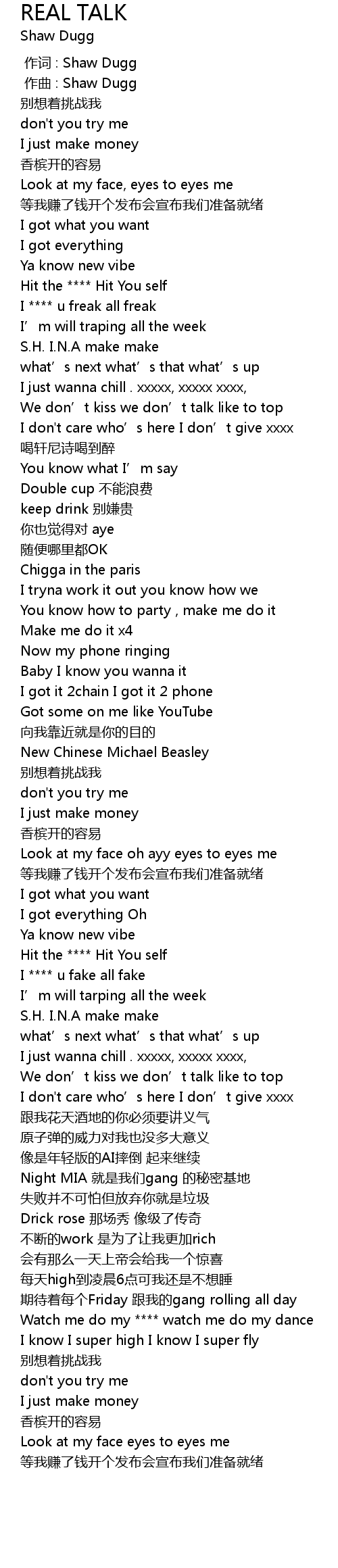 | [00:00.000] | zuò cí : Shaw Dugg |